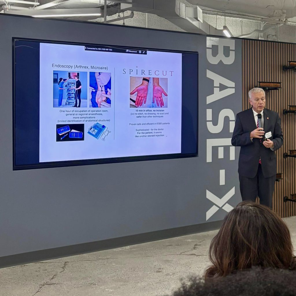 Spirecut presented its minimally invasive, implant-free technique for carpal tunnel syndrome to investors, clinicians, and industry leaders. The pitch emphasized ultrasound guidance, precise ligament release without open surgery, and the potential for shorter recovery and reduced scarring. Follow-up conversations explored study design for U.S. sites and commercialization milestones.