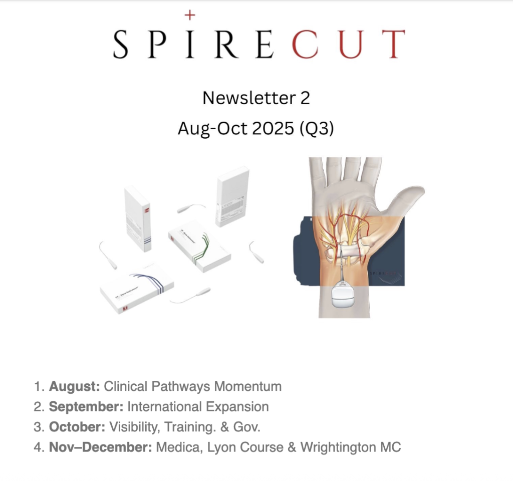 Spirecut is a Swiss MedTech company specializing in minimally invasive, ultrasound-guided instruments for trigger finger and carpal tunnel syndrome. Our patented Sono-Instruments® offer precise procedures, faster recovery, less pain, and no scarring. We also commercialize Sono-Bath®, a sterile liquid immersion system for enhanced ultrasound clarity, and Sono-Pack®, an all-in-one sterile procedural kit. Spirecut’s products are available worldwide through a network of distributors.